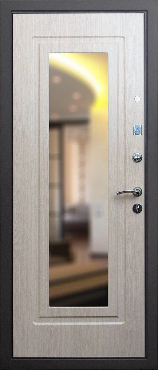 Прочная металлическая Дверь с зеркалом DZ385 по цене от 30 000 руб. под заказ в любой комплектации. Вы можете выбрать материал, замки, цилиндры и многое другое. Производим сами! Быстрая доставка и установка в Балашихе.