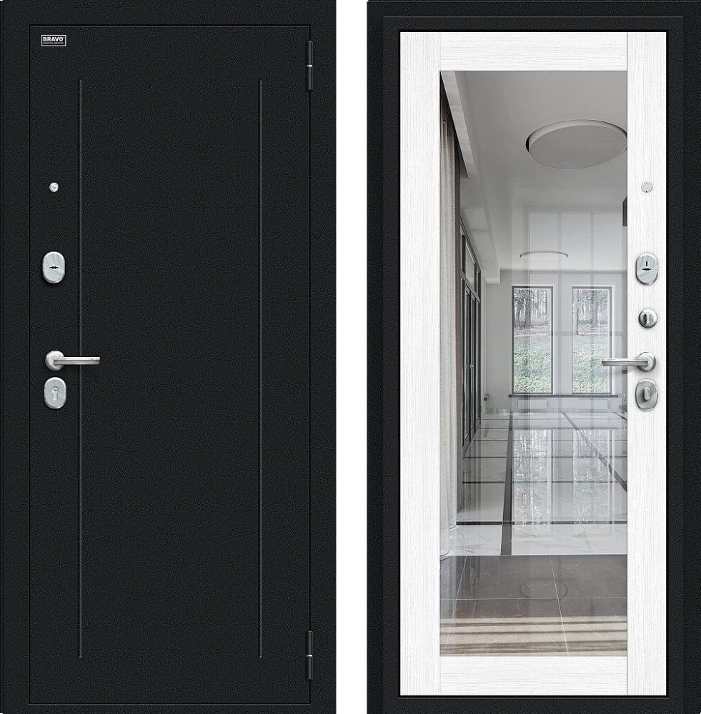 Надежная входная Дверь Браво Флэш Букле черное/Snow Melinga премиум класса по цене 34 017 руб. Большая толщина стали защитит от проникновения в ваш дом, квартиру или коттедж. Используется очень качественная фурнитура: замки, цилиндры, ручки, защелки. Покрытие и отделка двери изготовлено под внимательным контролем производителя. Дверь имеет долгий срок службы и гарантию.
