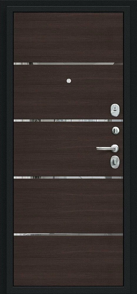 Надежная входная Дверь Браво Лайн Букле черное/Wenge Veralinga премиум класса по цене 31 137 руб. Большая толщина стали защитит от проникновения в ваш дом, квартиру или коттедж. Используется очень качественная фурнитура: замки, цилиндры, ручки, защелки. Покрытие и отделка двери изготовлено под внимательным контролем производителя. Дверь имеет долгий срок службы и гарантию.